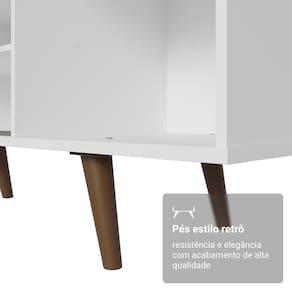 Com design contemporâneo, o móvel conta com uma estrutura moderna e funcional, três nichos em diferentes tamanhos e uma porta de correr, ideais para organizar eletrônicos, livros ou objetos decorativos. Também oferece espaço para TVs de até 80 polegadas.