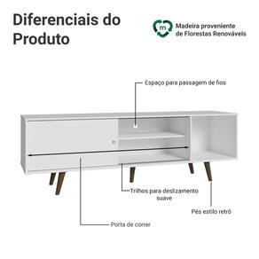 Na parte de trás, a abertura para passagem dos fios facilita a organização dos cabos. Já os pés no tom amadeirado Rustic garantem charme e estabilidade. O acabamento branco valoriza a decoração e traz um toque de leveza ao ambiente. Um móvel versátil, moderno e funcional.