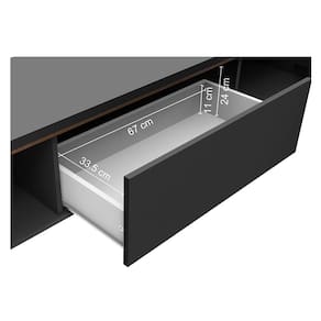 O design conta com duas portas laterais e uma gaveta central com corrediças metálicas, oferecendo amplo espaço para guardar livros, eletrônicos, acessórios e objetos decorativos, mantendo tudo sempre à mão.