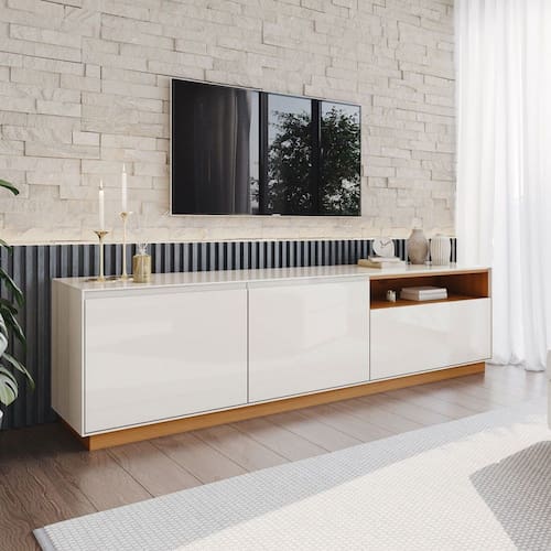 O(a) Rack para TV Até 86 Polegadas Auryn 3 Portas Cinamomo/Off White - Henn é produzido em MDF e MDP na escala de brilho Brilhante, e possui um grau de dificuldade de montagem: Médio.