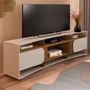 O(a) Rack para TV Até 86 Polegadas Seleto 2 Portas Off White/Pinho - Pnr Móveis é produzido em MDF e MDP na escala de brilho Fosca com Textura, e possui um grau de dificuldade de montagem: Médio.