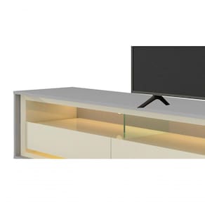 Rack Para Tv Com Led Requinte Cinza Com Off White - Gelius Móveis O Rack Requinte LED - Gelius Móveis é ideal para a sua sala de TV, contempla um desing inovador que promove ao seu ambiente modernidade e elegância, suas gavetas em posição estratégica inserem leveza a peça. Conta ainda com duas separações de vidro, promovendo nichos para o apoio de eletrônicos. Possui rodízios para uma maior facilidade na movimentação. Além de LED, queridinho da decoraçãões do Produto montado:Altura: 58 cmLargura: 211,4 cmProfundidade: 34,8 cmObservações:- Gavetas com corrediças telescópicas;- 6 rodízios;- Separações de vidro;- Ideal para Tvs de até 65 polegadas;- Inclui LED;- Pintura ultravioleta com acabamento acetinado na cor cinza;- Pintura ultravioleta com acabamento brilho na cor off white.