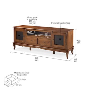O Rack para Sala com Pés Luiz XV 2 Gavetas 2 Portas e Nicho 60503 Linz Móveis é a peça ideal para quem busca sofisticação e organização e procura deixar sua sala de estar bem organizada e, claro, com um visual clássico! Com estrutura produzida em Madeira Maciça com acabamento verniz, materiais de alta resistência e qualidade, possibilitam que você desfrute dessa mobília por muito tempo, o rack branco para sala possui um amplo tampo em madeira que vai acomodar os eletrônicos e aqueles outros objetos essenciais à rotina, sejam decorativos ou não. Além disso, dispõe de 2 portas, 2 gavetas com corrediças telescópicas, prateleiras em vidro, 1 nicho, puxadores zamac e pés no estilo Luiz XV que juntos agregam estilo e requinte.