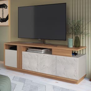 O Rack Para Sala de Estar Roma 180cm Delmarco é um elemento marcante na decoração da sua sala, deixando sua casa mais moderna. Com 1,80 de largura, tem amplo espaço para decoração. Detalhe em MDF ripado, tampo, base e lateral em chpa de 25mm, possui 4 portas e muito espaço para guardar obejtos. Comporta Tv ate 70", sendo uma peça perfeita para organizar e decorar o seu ambiente. Produto Montado: Sim Acabamento: Finish Foil Acabamento da Porta: Finish Foil Acabamento da Prateleira: Finish Foil Ambiente Principal: Sala de Estar codigo_ean: 7909903480007 Complexidade da Montagem: Média: pode ser montado por mais de uma pessoa e/ou necessite de maior conhecimento para montagem Cor: Freijó/Arenas/Alaska Cor do Produto: Freijó/Arenas/Alaska Escala de Brilho: Semi-Brilho Escala de Brilho da Porta: Semi-Brilho Escala de Brilho da Prateleira: Semi-Brilho Ideal para TVs até (Polegadas): 70 Informações Complementares: Detalhe Ripado em MDF Itens Inclusos: 1 Rack, manual de montagem e kit ferragens Linha ou Coleção: RACK Manual de Montagem e Instalação: https://product-hub-prd.madeiramadeira.com.br/878318/documents/7522f882-e04d-4b66-8f33-9d937e880bb41652633ra110manual.pdf Material da Porta: MDP Material da Prateleira: MDP Material dos Pés: MDP Material Principal: MDP Necessita Montagem: Sim Origem do Produto: Nacional Peso: 54,32 kg Peso Máximo por Prateleira: 3 kg Possui Adega: Não Possui Espelho: Não Possui iluminação: Não Possui Pés: Rodapé Possui Portas: Sim Possui Prateleiras: Sim Possui Vidro: Não Recomendações de Uso, Manutenção e Limpeza: A limpeza do móvel deve ser efetuada somente com pano macio e seco. Não utilizar produtos abrasivos ou similares, tais como: Cera, álcool, detergentes, tinner, lustra móveis, entre outros. Sapatas Niveladoras: Não Sistema de Montagem: Parafusos, cavilhas e minifix Tipo de Porta: Bater Tipo de Puxador da Porta: Embutido Tipo de Rack: Rack Padrão Ean: 7909903480007