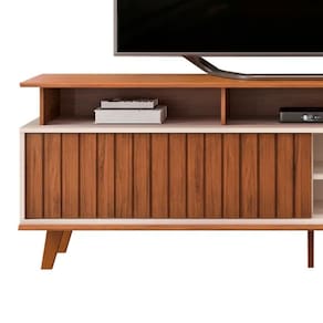 Aproveite os dois nichos espaçosos ao lado da porta de correr, ideais para acomodar decodificadores, DVDs, consoles e outros dispositivos. A parte inferior do tampo conta com três nichos adicionais, para organizar objetos diversos de maneira prática e sem perder a elegância. Além disso, o rack possui um sistema de passa-fios, mantendo os cabos organizados e fora de vista. Isso facilita a manutenção do ambiente sempre arrumado e livre de fios visíveis.