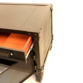 Confeccionado a mão por uma equipe especializada em móveis em aço e madeira.