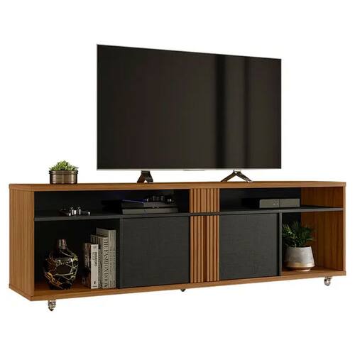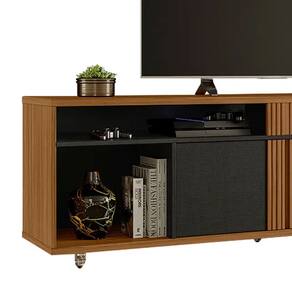 Praticidade e design! Seus pés possui rodízios de silicone e freio nos traseiros, garantem mais facilidade e praticidade na hora de limpar. Seu design é único e moderno conta com detalhes ripados em MDF, e deixará sua sala ainda mais glamorosa.