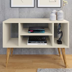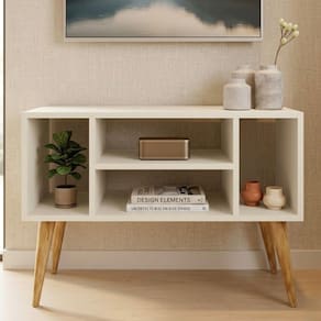 Rack para TV Retrô com Nichos Organizadores e Pés em Madeira