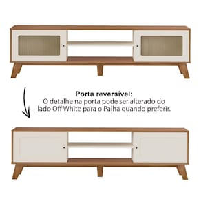 Além de seu apelo estético, o Rack Charlotte é altamente funcional. Ele é compatível com televisores WideScreen e ultra WideScreen de até 75 polegadas, proporcionando uma excelente experiência de entretenimento. As portas com dobradiças metálicas garantem segurança e durabilidade, além de facilitar o acesso aos itens armazenados.
