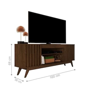 ORack para é perfeitopara você e seu cômodo! Possui portas com dobradiças metálicas, pés em madeira. com detalhes ripados e acabamento amadeirado Touch.