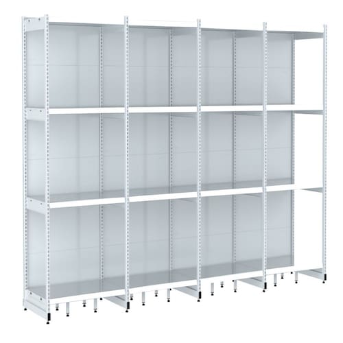 A fileira de Racks FIT deve ser iniciada com o Rack Inicial que possui 2 laterais. O Rack FIT Continuação possui 1 lateral, utilizado para dar continuidade à fileira e não pode ser montado individualmente.