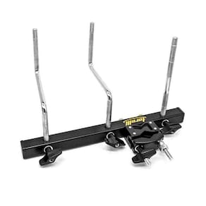 Mini rack preto 3 hastes - clamp multiuso para percussão - 3 hastes para fixar 3 instrumentos de efeito - clamp fixador para colocar em estantes diversas - comporta cowbells, pandeiros, timbalitos e acessórios em geral - compatível com a maioria das estantes de prato - modelo: ta453