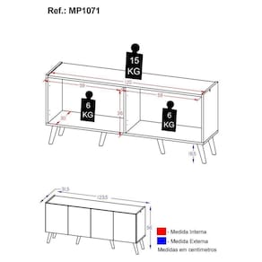 Dimensões do produto montado: Altura: 56 cm | Largura: 123,5 cm | Profundidade: 31,5 cm *Você pode consultar as medidas detalhadas na imagem técnica do produto. *Devido às variações de tamanho dos televisores no mercado, sugerimos que compare o tamanho da sua com o rack antes de efetuar a compra.