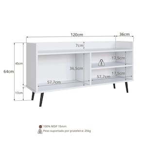 O Rack Plasmobile é a combinação perfeita de estilo retrô com moderno, seu design simples e funcional, ocupa pouco espaço, e é ideal para decoração do seu ambiente. Acomoda perfeitamente uma TV de 50 Polegadas. Produto Montado: Sim Acabamento: Finish Foil Acabamento da Prateleira: Finish Foil Acabamento dos Pés: Cristal Altura dos Pés: 17 cm Altura Máxima dos Pés: 17.0000 Ambiente Principal: Sala de Estar codigo_ean: 7900288246714 Complexidade da Montagem: Média: pode ser montado por mais de uma pessoa e/ou necessite de maior conhecimento para montagem Cor: Branco Cor do Produto: Branco Cor Flex: Não Cor Interna: Branco Escala de Brilho: Fosco Escala de Brilho da Prateleira: Fosco Espessura do Tampo: 15 mm Estilo do Pé: Retrô Ideal para TVs até (Polegadas): 50 Itens Inclusos: 1 Rack, Kit Ferragem e Manual de Montagem Linha ou Coleção: Sala Manual de Montagem e Instalação: https://product-hub-prd.madeiramadeira.com.br/901453779/documents/f6123926-4316-43e4-9402-5f9a1dea4ff43251305522517592605509424.pdf Marca: Plasmóbile Material da Prateleira: MDP Material dos Pés: Plástico Material Principal: MDP Montagem Flex: Não Necessita Montagem: Sim Origem do Produto: Nacional Peso: 16,2 kg Peso Máximo por Prateleira: 8 kg Possui Adega: Não Possui Espelho: Não Possui iluminação: Não Possui Passa Cabos: Não Possui Pés: 04 Possui Portas: Não Possui Prateleiras: Sim Possui Vidro: Não Quantidade de Nichos: 03 Recomendações de Uso, Manutenção e Limpeza: Para a limpeza do móvel utilizar pano levemente umedecido Sapatas Niveladoras: Não Sistema de Montagem: Parafuso e Cavilhas Marca: Não Informado