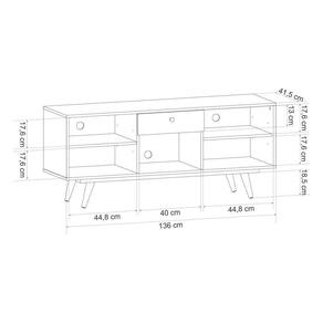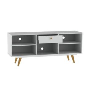 Rack Retrô Turmalina BrancoO Rack Retrô Turmalina é um ótimo produto com um design retrô e muito útil. Produzido em mdp e mdf de 15 e 25 mm, possui uma gaveta com corrediças metálicas, o puxador e pés são de madeira envernizada, duas prateleiras com quatro compartimentos abertos para colocar eletrônicos e decoração e furos para passa fio.Cor: BrancoEscala de brilho: AcetinadoDimensões (AxLxP): 58,5cmX136cmX38,8cmMaterial da estrutura: MDP 15MM E MDF 25/3MMAcabamento: Pintura UVPeso do produto montado KG: 24,5kgNecessita de montagem? SimQuantidade de prateleiras: 02Tipos de prateleiras: FixaQuantidades de nichos: Não PossuiQuantidades de gavetas: 01Quantidades de portas: Não PossuiTipos de portas: Não PossuiQuantidade de puxadores: Não PossuiMaterial dos puxadores: Não PossuiRodízios: Não PossuiQuantidade de pés: 04Tipo dos pés: Pé Palito de madeiraAltura os pés: 17cmSuporta até (KG): 30kgEspaço para TV: SimAcompanha suporte TV: NãoPossui furação para passagem de cabos: SimTamanho máximo de TV: 43?Possui manual de montagem: SimRecomendação de limpeza: Limpeza com pano umedecido. Não aplicar lustra móveis.Volumes: 01Garantia: 03 meses.ATENÇÃOIMAGENS MERAMENTE ILUSTRATIVAS, PODENDO HAVER ALGUMA VARIAÇÃO DE COR DEPENDENDO DE CADA TELA OU MONITOR.Rack Retro Tv atà 40 Polegadas Turmalina Branco