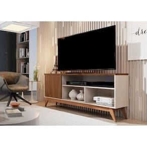 Rack Retrô TV Até 60 Polegadas Pés De Madeira 1 Porta E 3 Nichos Malbec Wood 1.36