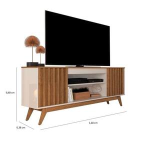 Rack Retrô TV Até 72 Polegadas Pés De Madeira 2 Portas 2 Nichos Malibu Wood Ripado 1.60