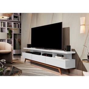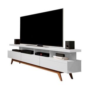 Rack Retrô TV Até 72 Polegadas Pés De Madeira 3 Gavetas 4 Nichos