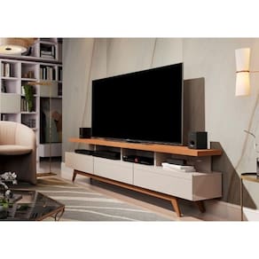 Rack Retrô TV Até 72 Polegadas Pés De Madeira 3 Gavetas 4 Nichos