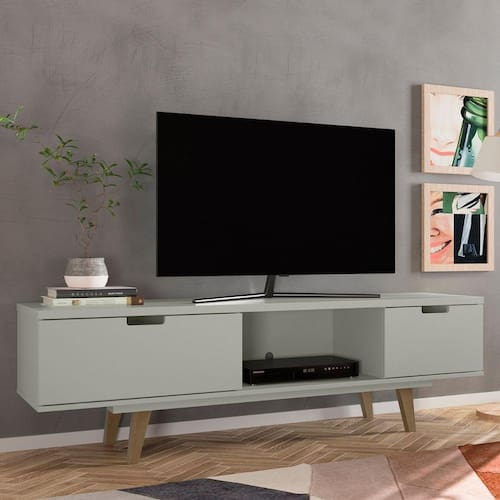 Rack Retrô Vintage Box Off White - Olivar MóveisO Rack Retrô Vintage Box é um móvel de MDF e MDP de 15 e 25 mm, com uma pegada retrô, deixando seu ambiente diferente e com personalidade. Possui duas gavetas em MDF, com corrediças telescópicas metálicas e usinagem como puxadores. Um compartimento aberto para colocar objetos e eletrônicos e fundos traseiro embutidos. Possui um espaço ótimo para sua TV com passa fio e quatro pés vintage em madeira envernizada.Tipo: Rack VintageModelo: BoxCor: Off WhiteDimensões (AxLxP): 47,8cm x 160cm x 38,5cmPeso do Produto Montado: 34,8kgCARACTERÍSTICASEstrutura: MDP 15/25MM E MDF 15/25 e 3MMAcabamento Pintura UVEscala de brilho AcetinadoPeso máximo suportado: 40KgGarantia: 3 mesesPés madeira vintageRodízios: não possuiQuantidade de gavetas: 2Tipo de corrediças: MetálicasQuantidade de prateleiras: 1Tipo de prateleiras: FixaQuantidade de Nichos: 1Espaço para TV (LxP): 160cm x 38,5Para TV de até 48 PolegadasProduto necessita montagem? SimRecomendações de manutenção: Limpeza com pano umedecido. Não aplicar lustra móveis.Volume: 2ATENÇÃOIMAGENS MERAMENTE ILUSTRATIVAS, PODENDO HAVER ALGUMA VARIAÇÃO DE COR DEPENDENDO DE CADA TELA OU MONITOR.Rack Retrà Vintage Box BalcÃo Off White Olivar MÃveis