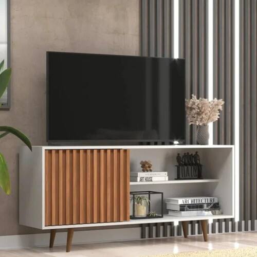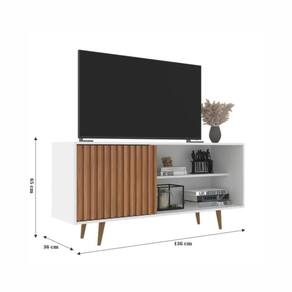 Rack San Diego Branco/freijo o Rack Para TV San Diego Branco Ripado para Até 55 polegadas da J Carvalho é a peça ideal para compor um ambiente moderno e funcional. Com duas prateleiras e uma porta ripada, este móvel não apenas organiza sua TV e eletrônicos, mas também agrega um toque de estilo ao seu espaço. O Rack é construído em MDP. Disponível na elegante cor branca com freijó, suas dimensões de 65 cm de altura, 136 cm de largura e 36 cm de profundidade o tornam perfeito para ambientes variados.