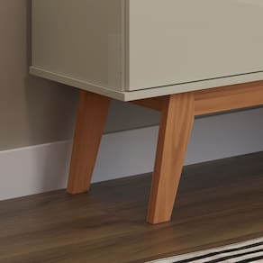 A estrutura com pés em madeira oferece firmeza, resistência e um toque natural, combinando facilmente com diferentes estilos de decoração.