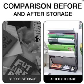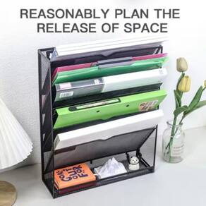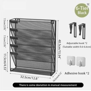 Rack de armazenamento de arquivo de parede de aço Rack de montagem vertical de 6 camadas Rack de revista com bandeja plana inferior, fechado lateral, preto Estrutura metálica durável: Feito de material de malha elegante, o revestimento em pó é durável Uma pluralidade de camadas de armazenamento: 6 compartimentos, adequadas para colocar documentos, documentos, revistas, livros, cadernos, etc. Há também um compartimento na parte inferior, que também é bom para colocar itens pequenos. Dois usos: você pode usar parafusos e outras ferramentas para fixar o suporte de arquivos na parede ou diretamente na mesa.