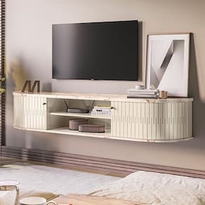 Características: Estrutura em MDP Pintura com acabamento UV 02 Portas flexíveis em MDF Puxadores Poliestireno Cromado Tampo e Base com Detalhes Curvos Suporta TVs de até 75" Possui Prateleira