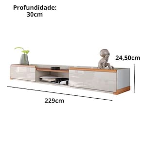 Formato: Rack | Cor: Off White Perolizado/Jequitiba | Baterias sao necessárias?: Não | Teste de certificação externa: Não | Componentes inclusos: - 1 Rack Suspenso Atlas - 1 Manual de instruções | Requer Montagem: Sim | é Fragil?: Não | Dimensões do item: Altura: 24,50 cm - Largura: 229 cm - Profundidade: 30 cm | Peso do Item: 25,50 Kg | Fabricante: Movelove | Numero do modelo: 0 | Numero de caixas de embalagem: 1 | Numero de Itens: 1 | Numero da peça: 0 | Característica Principal: Produzido em MDF de alta resistência, garantindo durabilidade e | Característica Principal 1: 2 gavetas espaçosas, ideais para guardar utensílios e objetos | Característica Principal 2: 1 Nicho | Fonte de energia: Não aplicável