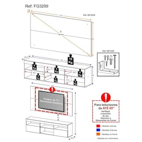 *Devido as variações de tamanho dos televisores no mercado, sugerimos que verifique as medidas da sua TV e compare com o painel antes de efetuar a compra.