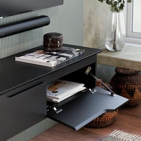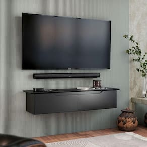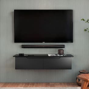 Rack Suspenso Flow Preto Com design minimalista e acabamento sofisticado, o Aparador Suspenso Flow é a escolha ideal para quem busca elegância com funcionalidade em ambientes compactos.Pensado para compor halls de entrada, salas ou corredores, o modelo valoriza cada detalhe do espaço, oferecendo leveza visual e praticidade no dia a estrutura suspensa garante um visual limpo e moderno, além de facilitar a limpeza e otimizar o ambiente com eficiê tampo e as portas em MDF usinado trazem um acabamento de alto padrão, evidenciando o cuidado com os detalhes e reforçando a proposta estética contemporâ amplo espaço interno, é ideal para armazenar objetos de forma discreta e organizada. O design funcional dispensa puxadores externos, criando uma frente contínua e diferencial, o modelo acompanha régua dupla face, permitindo personalizar o acabamento superior conforme o estilo do ões:Altura: 25 cmLargura: 112 cmProfundidade: 34 cmObservações:- Estrutura suspensa, com visual moderno e leve - Tampo e portas em MDF usinado, com acabamento refinado - Sem puxadores externos, com estética clean e sofisticada - Amplo espaço interno, para organização prática e funcional - Régua dupla face inclusa: escolha o visual que combina com seu ambiente - Ideal para halls, salas ou espaços compactos com estilo
