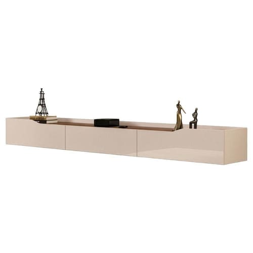 Transforme sua sala de estar com elegância e funcionalidade com esta ampla rack Efraín, suspensa, moderna, perfeita para acomodar sua ou complementar o painel. Produzida com pintura UV de alta qualidade em 8 camadas, o móvel oferece brilho duradouro, proteção contra riscos e facilidade na limpeza, garantindo beleza e resistência por muito mais tempo. Com 3 gavetas espaçosas, você tem amplo espaço para organizar aparelhos eletrônicos, videogames ou objetos de sua preferência, mantendo sempre tudo bem organizado. As corrediças telescópicas proporcionam abertura suave e silenciosa, assegurando praticidade e conforto no uso diário. Seu design moderno e sofisticado combina funcionalidade, sendo a escolha ideal para a sua sala.