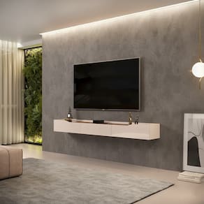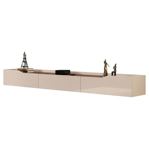 Transforme sua sala de estar com elegância e funcionalidade com esta ampla rack Efraín, suspensa, moderna, perfeita para acomodar sua TV ou complementar o painel. Produzida com pintura UV de alta qualidade em 8 camadas, o móvel oferece brilho duradouro, proteção contra riscos e facilidade na limpeza, garantindo beleza e resistência por muito mais tempo. Com 3 gavetas espaçosas, você tem amplo espaço para organizar aparelhos eletrônicos, videogames ou objetos de sua preferência, mantendo sempre tudo bem organizado. As corrediças telescópicas proporcionam abertura suave e silenciosa, assegurando praticidade e conforto no uso diário. Seu design moderno e sofisticado combina funcionalidade, sendo a escolha ideal para a sua sala.
