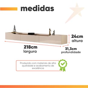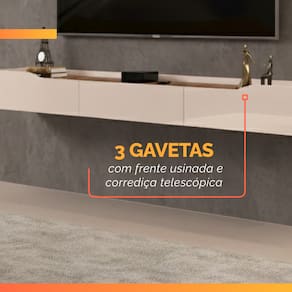 MODELO: Rack Suspenso para Painel ou TV até 75 Polegadas 2,18m 3 Gavetas Efraín