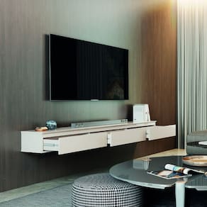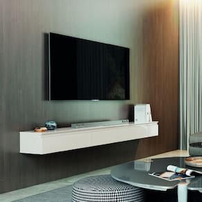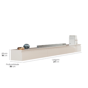 Eleve o estilo do seu espaço com o Rack Suspenso Aspen 2,17m, um acessório que combina elegância e funcionalidade em perfeita harmonia. Com três gavetas equipadas com corrediças telescópicas de deslizar suave e um tampo em MDF com bordas laqueadas, este rack oferece um espaço organizado e sofisticado para acomodar aparelhos eletrônicos e objetos decorativos. Garantindo um ambiente mais harmonioso, elegante e moderno, onde a organização e a praticidade se encontram com o estilo