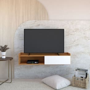 Rack Suspenso para TV 50 Polegadas Atena Freijó/Branco - O Complemento Perfeito para Sua Sala de Estar