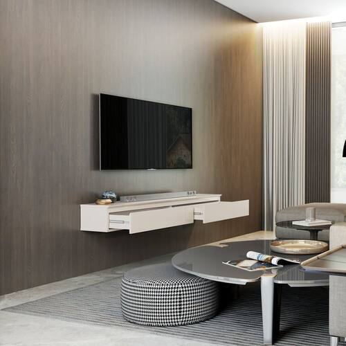 O Nicho Suspenso Aspen 1.35 é indicado para TVs de até 55 polegadas, oferecendo duas gavetas funcionais e espaço inteligente para eletrônicos e objetos decorativos. Com design moderno e dimensões compactas, integra praticidade e sofisticação, ideal para salas menores que não abrem mão de estilo. Produto Montado: Sim Acabamento: Pintura UV Acabamento da Gaveta: Pintura UV Ambiente Principal: Sala de Estar codigo_ean: 7900288255457 Complexidade da Montagem: Média: pode ser montado por mais de uma pessoa e/ou necessite de maior conhecimento para montagem Cor: Off White Cor da Caixa: Off White Cor do Produto: Off White Escala de Brilho: Brilhante Escala de Brilho da Gaveta: Brilhante Espessura do Tampo: 1,8 mm Gaveta com Chave: Não Ideal para TVs até (Polegadas): 55 Itens Inclusos: 1 Rack Suspenso, Kit Ferragens e Manual de Montagem Linha ou Coleção: Aspen 1.35 Manual de Montagem e Instalação: https://product-hub-prd.madeiramadeira.com.br/489585536/documents/151917d5-2f9c-4d73-a7b2-6c838fe8d76e3264477610717598515440893.pdf Marca: EDN Móveis Material da Gaveta: MDF/MDP Material Principal: MDF/MDP Necessita Montagem: Sim Origem do Produto: Nacional Peso: 18,69 kg Peso Máximo por Gaveta: 2 kg Possui Adega: Não Possui Espelho: Não Possui iluminação: Não Possui Passa Cabos: Sim Possui Pés: Suspenso Possui Portas: Não Possui Prateleiras: Não Possui Vidro: Não Quantidade de Gavetas: 02 Gavetas Recomendações de Uso, Manutenção e Limpeza: Limpar com pano macio e levemente umedecido com água. Evitar produtos abrasivos, álcool, solventes ou esponjas ásperas. Secar imediatamente após a limpeza. Sistema de Montagem: Parafusos, Cavilhas e MiniFix Tipo de Corrediça da Gaveta: Metálica Telescópica Tipo de Puxador da Gaveta: Embutido