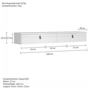 O Rack Suspenso Line 1600cm é um produto com um design moderno, possui duas portas basculantes em MDF com frisos e puxadores caracterizando o couro natural. Sua estrutura é em MDF e MDP de 15cm e 25cm, possui três compartimentos internos. É um produto que você poderá instalar na parede de qualquer ambiente, no estilo contemporâneo, personalizando e deixando-o exclusivo. Produto Montado: Sim Acabamento: Acetinado Acabamento da Porta: Pintura UV codigo_ean: 7900288097637 Complexidade da Montagem: Alta: deve ser montado por um montador especializado Cor: Branco Ac Cor da Caixa: Preto Cor da Porta: Preto Cor do Produto: Branco Ac Cor Flex: Não Cor Interna: Branco Ac Escala de Brilho: Semi-Brilho Escala de Brilho da Porta: Semi-Brilho Ideal para TVs até (Polegadas): 55 Itens Inclusos: 1 Manual de Montagem + Acessórios para Instalação Manual de Montagem e Instalação: https://product-hub-prd.madeiramadeira.com.br/982365/documents/e20fa495-bead-455e-bea1-786ea541d6dc2756850438717425028007624.pdf Marca: Olivar Material da Porta: MDF Material do Puxador da Porta: Couro Material Principal: MDP Montagem Flex: Não Necessita Montagem: Sim Origem do Produto: Nacional Peso: 17 kg Possui Adega: Não Possui Espelho: Não Possui iluminação: Não Possui Passa Cabos: Não Possui Pés: Suspenso Possui Prateleiras: Não Possui Vidro: Não Recomendações de Uso, Manutenção e Limpeza: Pano úmido. Não aplicar lustra móveis. Sistema de Montagem: Parafusos e Minifix Tipo de Dobradiça/Corrediça da Porta: Metálica Tipo de Puxador da Porta: Externo Tipo de Rack: Rack Suspenso