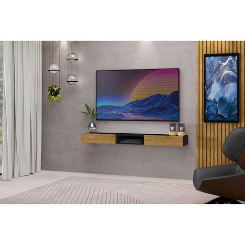 Em um mundo onde o espaço é um luxo cada vez mais escasso, encontrar soluções inteligentes para organizar sua casa se torna essencial. Apresentamos o Rack Suspenso Denver, uma peça versátil e elegante que não só maximiza o espaço disponível, mas também adiciona um toque de sofisticação ao seu ambiente. Acabamento: Pintura UV Acabamento da Gaveta: Pintura UV Ambiente Principal: Sala de Estar Complexidade da Montagem: Alta: deve ser montado por um montador especializado Cor: Preto/Marrom Cor do Produto: Preto/Marrom Escala de Brilho: Fosco Gaveta com Chave: Não Ideal para TVs até (Polegadas): 89 Itens Inclusos: 1 Rack, Kit Ferragens e Manual de Montagem Manual de Montagem e Instalação: https://cdn2.madeiramadeira.com.br/atributo/j-a-moveis/1719720-rack-suspenso-denver.pdf Material da Gaveta: MDP Material Principal: MDP Necessita Montagem: Sim Peso: 24 Peso Máximo por Gaveta: 5 Possui Espelho: Não Possui Possui iluminação: Não Possui Pés: Suspenso Possui Portas: Não Possui Prateleiras: Não Recomendações de Uso, Manutenção e Limpeza: Limpar com pano seco, manter em lugar livre de umidade, ao abrigo de exposição direta ao sol. Sistema de Montagem: Tampa, Pregos, Parafusos Tipo de Corrediça da Gaveta: Metálica Simples Tipo de Puxador da Gaveta: Embutido undefined: 885683
