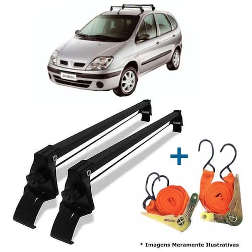 Rack teto bagageiro + 2 cintas scenic ano 98/10 A vhip desenvolveu esse rack sob rigoroso controle de qualidade, cujo processo industrial, segue os padrões de segurança, com acompanhamento e supervisão técnica contínua, visando proporcionar ao consumidor, uma excelente alternativa no transporte de bagagens ou cargas. Especificação técnica: Projetado e desenvolvido para suportar até 45 kg de peso máximo, desde que distribuído de forma uniforme e equilibrada; Manual de instruções, para orientar a montagem, sua capacidade de transporte, regras de utilização e outros informes; Não amassa e nem risca o veículo; Cor preto; Fabricado em aço; Não exige furações; Fácil instalação; Ótimo acabamento; Excelente resistência. Ficha técnica: fabricante: vhip; material: ferro tubular / aço; capacidade de carga do rack: 45kg distribuídos cor: preto. Conteúdo da embalagem: 2 racks dianteiro + traseiro ; kit instalação; manual; 2 cintas de amarração com catraca. Atenção:O envio das cintas de amarração ocorre de forma aleatória, conforme disponibilidade de cores em estoque Instalação do produto:Nossos produtos acompanham manual de instalação, se por algum motivo não conseguir instalar, favor entrar em contato conosco atraves do bilhete colado na caixa do produto. Temos uma equipe especializada para te ajudar.