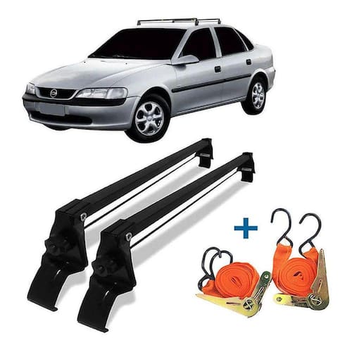 Rack teto bagageiro + 2 cintas vectra ano 96/05 A vhip desenvolveu esse rack sob rigoroso controle de qualidade, cujo processo industrial, segue os padrões de segurança, com acompanhamento e supervisão técnica contínua, visando proporcionar ao consumidor, uma excelente alternativa no transporte de bagagens ou cargas. Especificação técnica: Projetado e desenvolvido para suportar até 45 kg de peso máximo, desde que distribuído de forma uniforme e equilibrada; Manual de instruções, para orientar a montagem, sua capacidade de transporte, regras de utilização e outros informes; Não amassa e nem risca o veículo; Cor preto; Fabricado em aço; Não exige furações; Fácil instalação; Ótimo acabamento; Excelente resistência. Ficha técnica: fabricante: vhip; material: ferro tubular / aço; capacidade de carga do rack: 45kg distribuídos cor: preto. Conteúdo da embalagem: 2 racks dianteiro + traseiro ; kit instalação; manual; 2 cintas de amarração com catraca. Atenção:O envio das cintas de amarração ocorre de forma aleatória, conforme disponibilidade de cores em estoque Instalação do produto:Nossos produtos acompanham manual de instalação, se por algum motivo não conseguir instalar, favor entrar em contato conosco atraves do bilhete colado na caixa do produto. Temos uma equipe especializada para te ajudar.