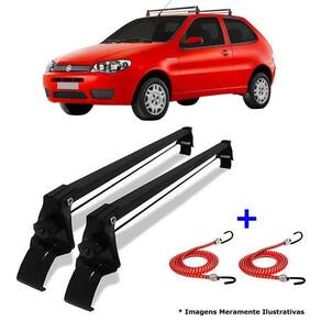 Rack teto bagageiro + 2 elasticos fiat palio 2 ptas 1996 a 2012 A vhip desenvolveu esse rack sob rigoroso controle de qualidade, cujo processo industrial, segue os padrões de segurança, com acompanhamento e supervisão técnica contínua, visando proporcionar ao consumidor, uma excelente alternativa no transporte de bagagens ou cargas. Especificação técnica: Projetado e desenvolvido para suportar até 45 kg de peso máximo, desde que distribuído de forma uniforme e equilibrada; Manual de instruções, para orientar a montagem, sua capacidade de transporte, regras de utilização e outros informes; Não amassa e nem risca o veículo; Cor preto; Fabricado em aço; Não exige furações; Fácil instalação; Ótimo acabamento; Excelente resistência. Ficha técnica: fabricante: vhip; material: ferro tubular / aço; capacidade de carga do rack: 45kg distribuídos cor: preto. Conteúdo da embalagem: 2 racks dianteiro + traseiro ; kit instalação; manual; 2 elasticos extensor. Atenção:O envio do elastico extensor ocorre de forma aleatória, conforme disponibilidade de cores em estoque Instalação do produto:Nossos produtos acompanham manual de instalação, se por algum motivo não conseguir instalar, favor entrar em contato conosco atraves do bilhete colado na caixa do produto. Temos uma equipe especializada para te ajudar.