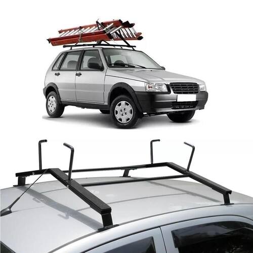 - sendo na linha pesada 300mm de solda e na linha econômica sao 230mm. - são fabricados com chapas de 1,2mm. - apoio das escadas com chapas 2mm. - recomendado peso máximo 80kg. - pés auto-reguláveis, os quais permitem um excelente apoio no teto dos carros. - pés auto-reguláveis, o que permite ser ajustado para varios veiculos linha leve 2 ou 4 portas e todos os anos de fabricação. - transporta até 02 escadas;