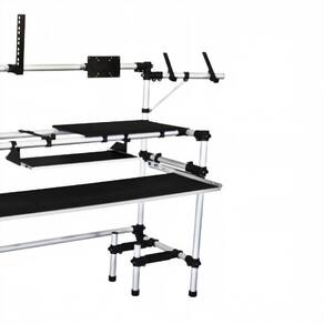 Possui bandejas em MDF revestido em EVA para equipamentos, com acabamento em alumínio, totalmente desmontável e ideal para transporte.Os Suportes são modulares podendo acomodar e adequar o seu equipamento da melhor forma e posição para sua performance de trabalho.
