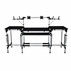 É um rackfabricado em alumínio, o que o torna leve para transporte,totalmente desmontável e resistente para suportar aparelhos pesados.Os Suportes são modulares podendo acomodar e adequar o seu equipamento da melhor forma e posição para sua performance de trabalho.