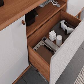 O Rack Bancada é a combinação perfeita entre praticidade, durabilidade e um design moderno. Com acabamento em tonalidade amadeirado semi brilho, ele traz sofisticação e aconchego ao seu ambiente.