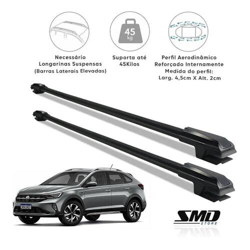 Rack Travessa De Teto Aluminio Preto Vw Nivus Preto Especifico Par de Travessa De Teto Rack Vw Nivus Aluminio Preto - Modelo Travessa de 4,5cm larg x 2cm altura