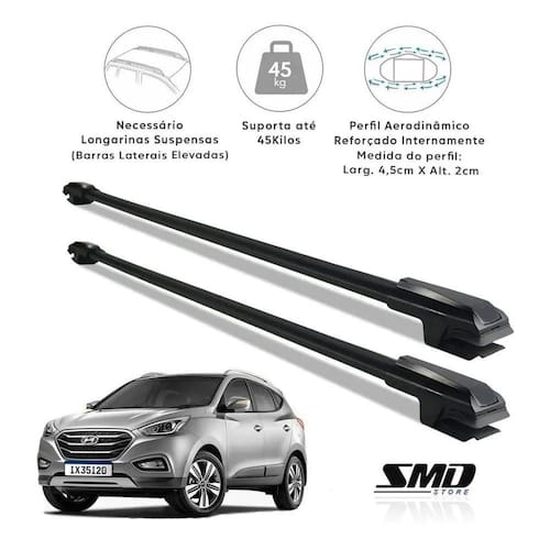 Rack Travessa De Teto Hyundai Ix35 10 A 18 Aluminio Preto Preto Especifico Par de Travessa De Teto Rack Hyundai Ix35 2010 A 2018 Aluminio Preto - Modelo Travessa de 4,5cm larg x 2cm altura