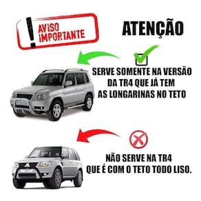 Aplicação: Modelo: pajero tr4 com longarina de teto modelo tubolar serve apenas na longarina tubolar conforme foto