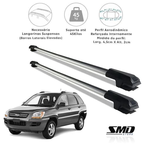 Rack Travessa Teto Prata Aluminio Kia Sportage 2004 A 2009
